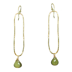 Hammered long ovals with your choice of stone, about 2" long.