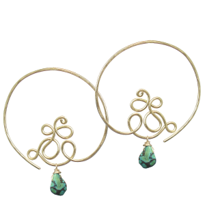 Hammered squiggle hoops with your choice of stone about 2" long.