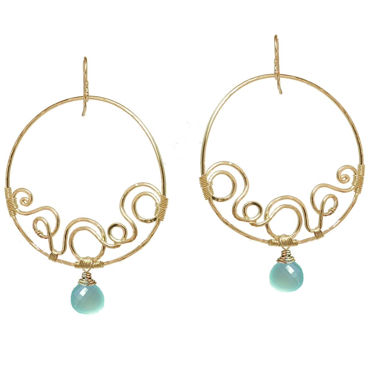 Hammered squiggle shapes with your choice of stone, about 2".