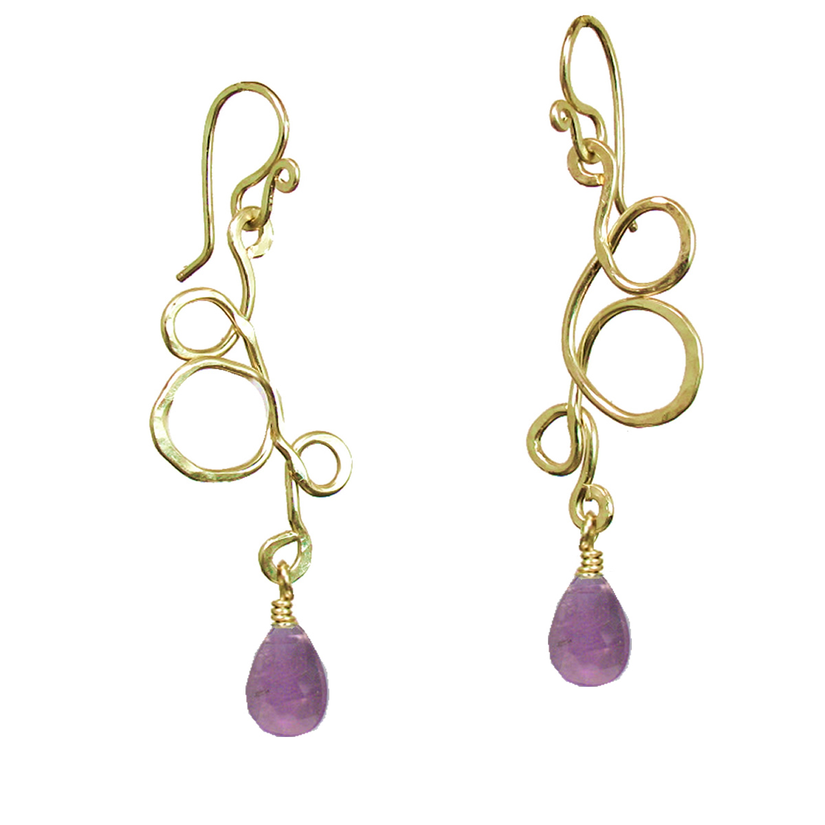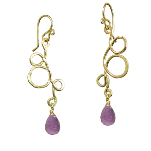Hammered squiggle shapes with your choice of stone, about 2".