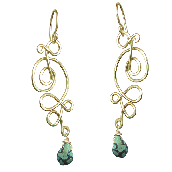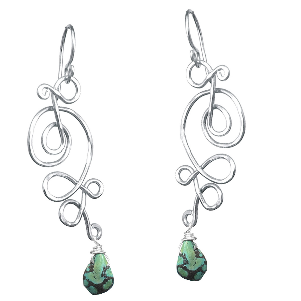 Hammered swirl shapes with your choice of stone about 2-1/4".