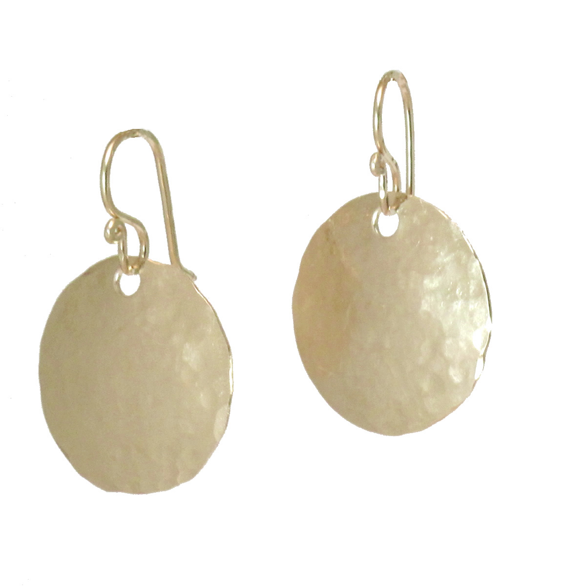 Hammered circles, about 1-1/4" long. Your choice of convex (rounded out) or concave (rounded in) facing out.