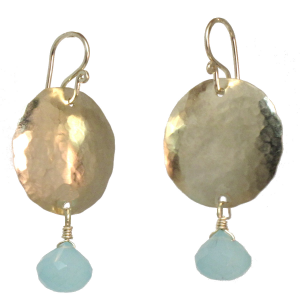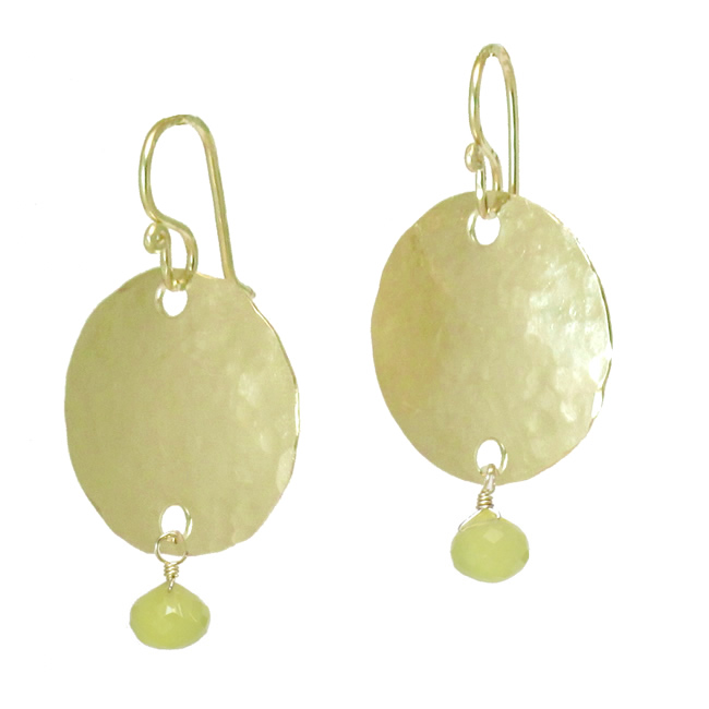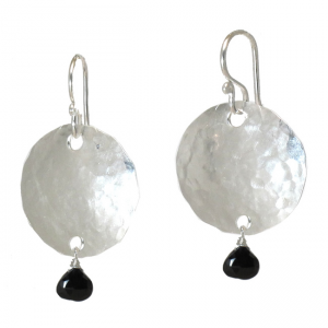 Hammered circles with choice of stone, about 1-1/4" long. Your choice of convex (rounded out) or concave (rounded in) facing forward.
