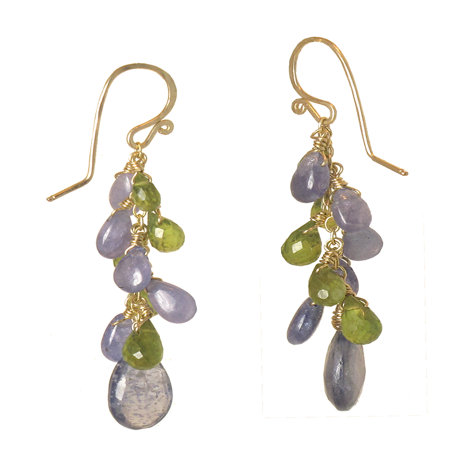 Tanzanite, iolite, and peridot clusters, about 1-3/4".