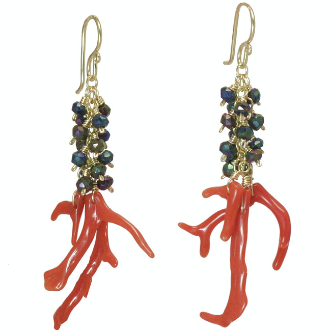 Clusters of black spinel, and red branch coral, about 2-1/4" long.