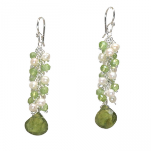 Clusters of ivory pearls, peridot, and idocrase, about 1-3/4" long.