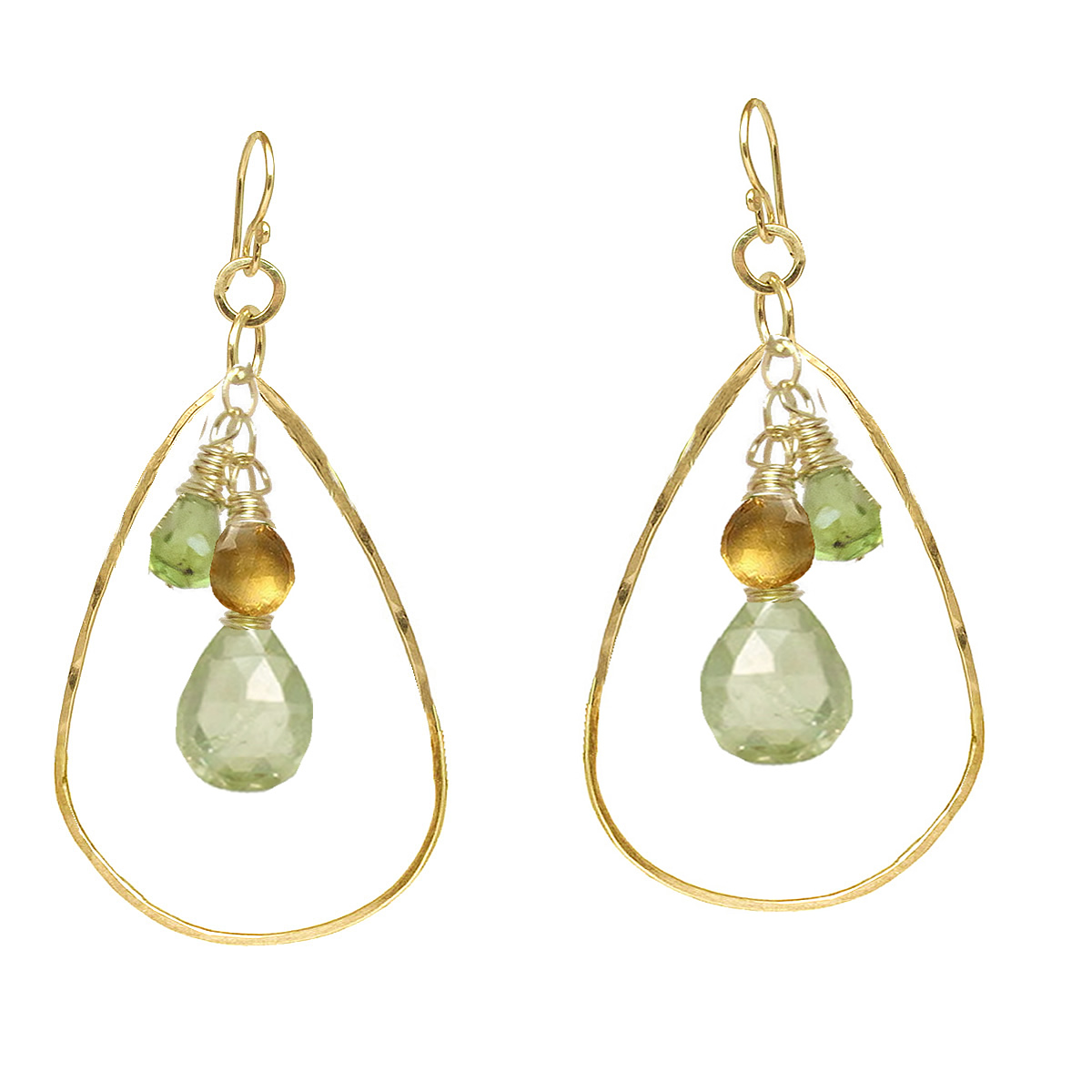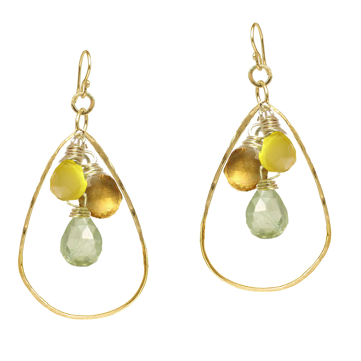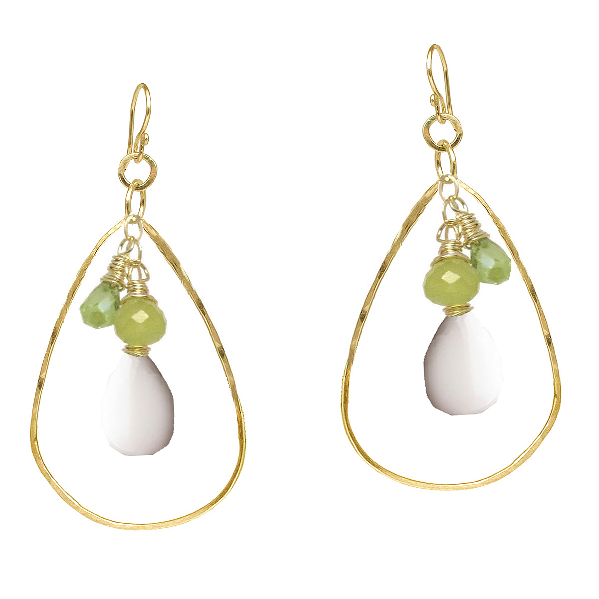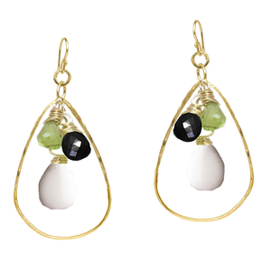 Hammered drops with your choice of stones about 1-3/4" long.
