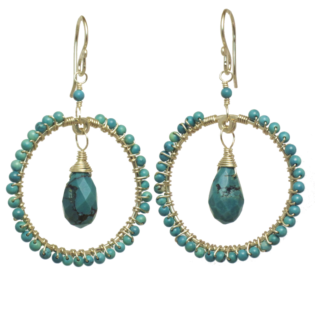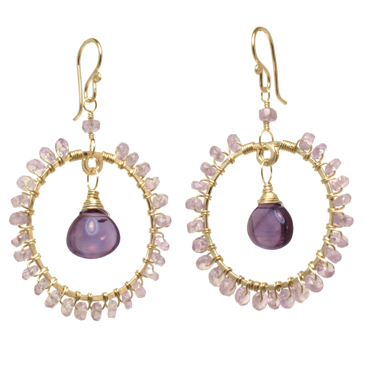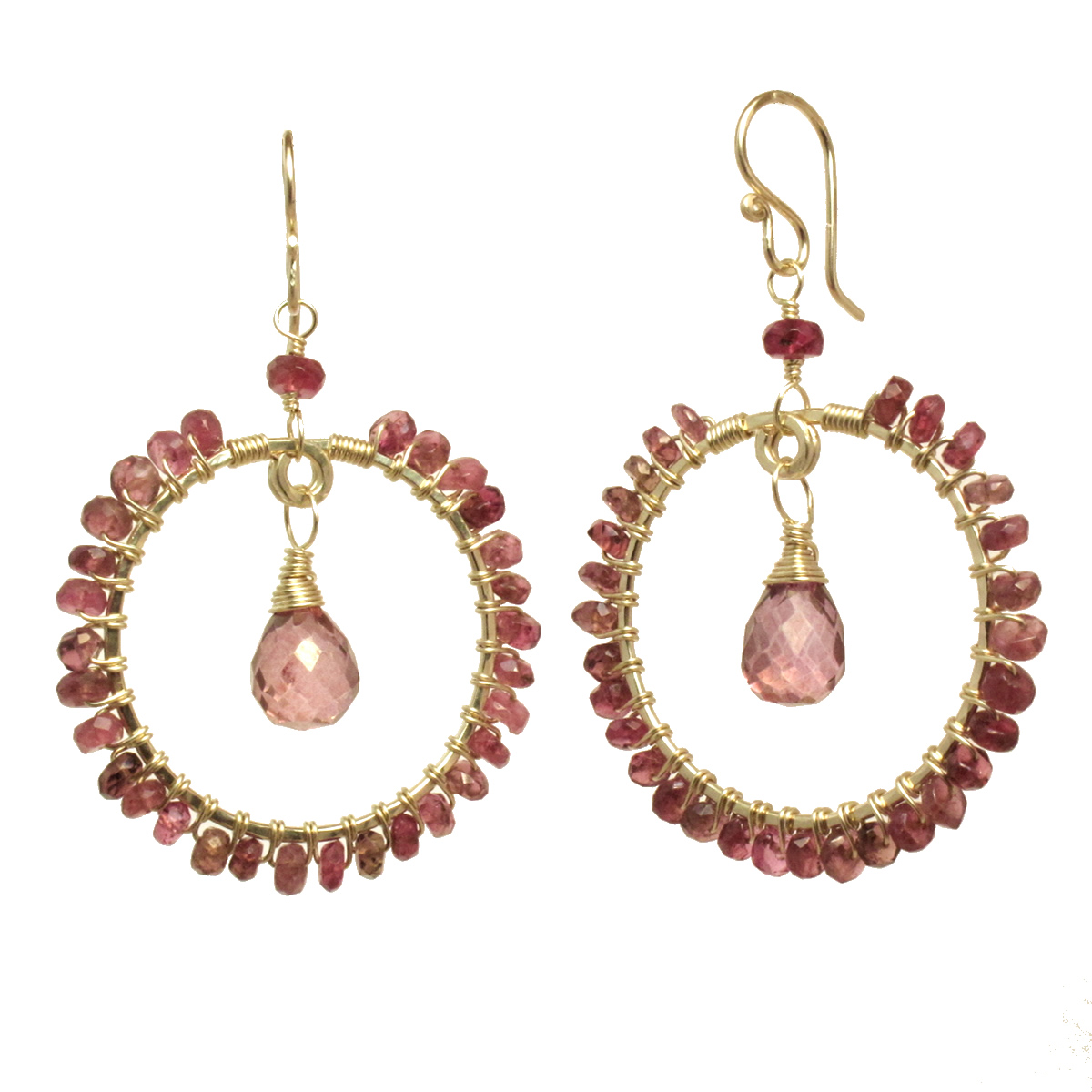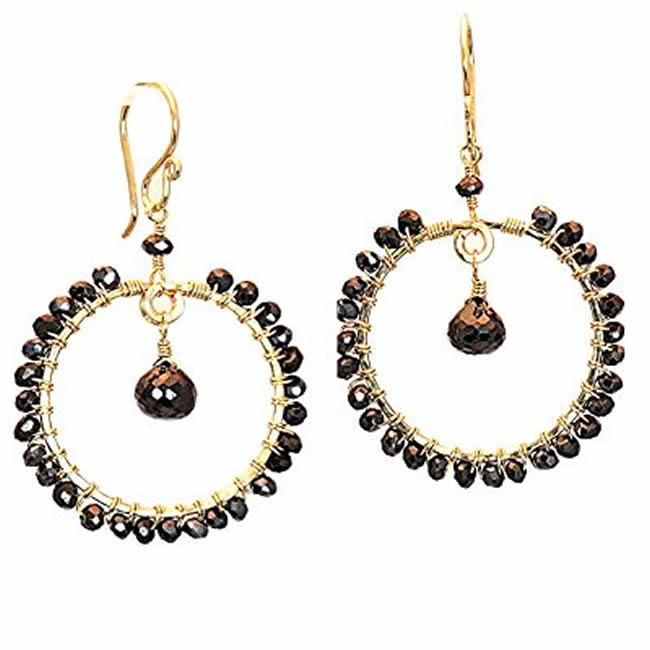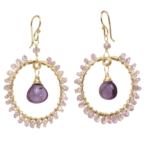 ammered circles wrapped with choice of rondelle and teardrop stones, about 1-3/4".