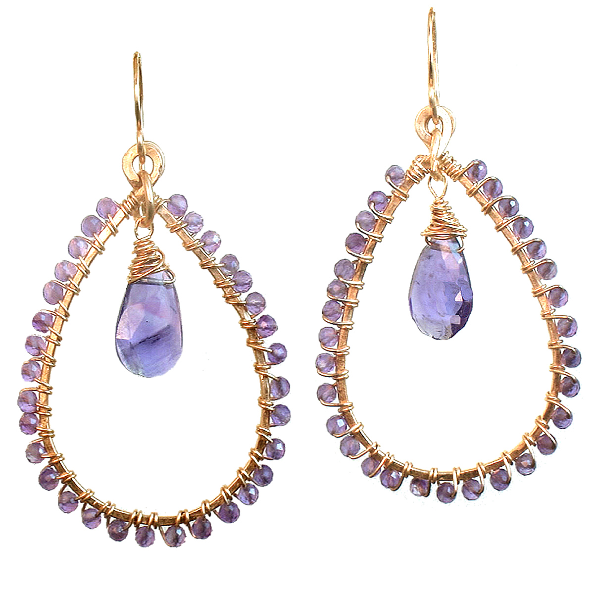 Hammered hoops with your choice of stone, about 1-3/4" long.