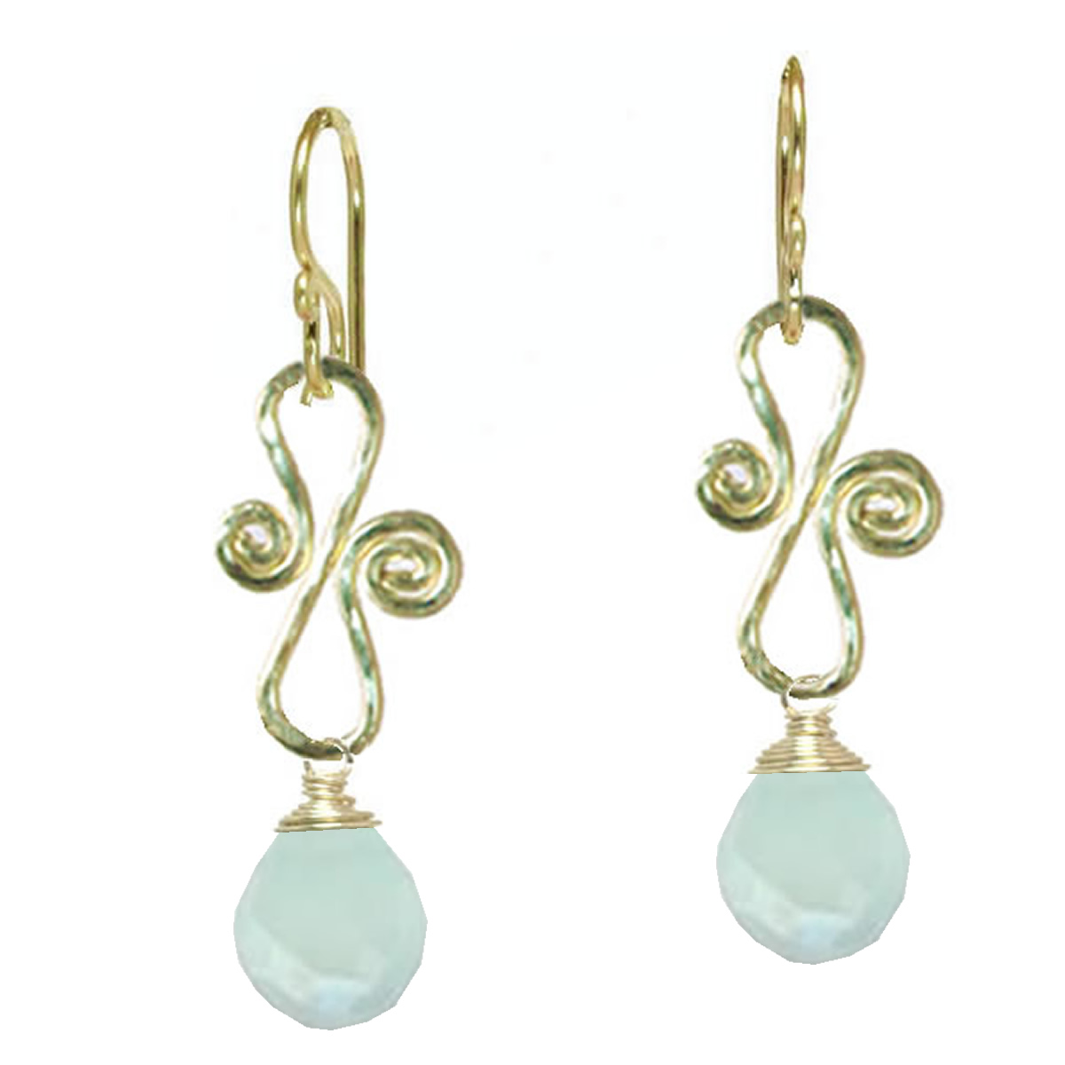 Hammered scroll shape with choice of stone, about 1-/2" long.