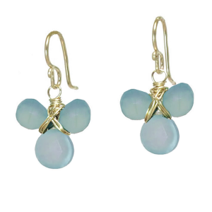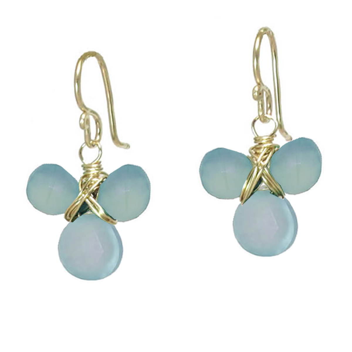 Sea blue chalcedony wrapped into petal shapes, 1-1/4".