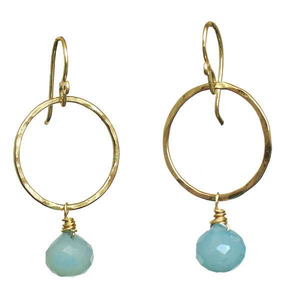 Hammered circles with sea blue chalcedony, about 1-1/4".