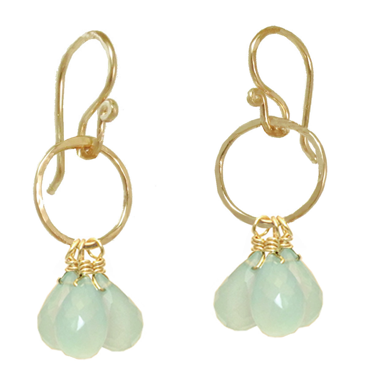 Small hammered circles w/ sea blue chalcedony, about 1-1/4".