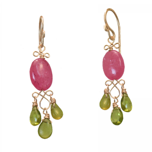 Pink sapphire and peridot with filagree wire, about 1-1/4".