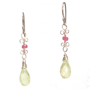 Pink sapphire and green amethyst, about 1-1/2".
