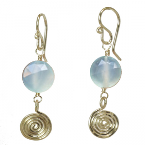 Sea blue chalcedony with hammered swirls, about 1-1/2" long.