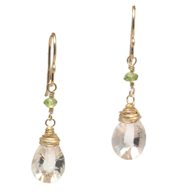 Your choice of rondelle with crystal quartz, about 1-1/4" long.
