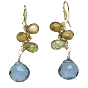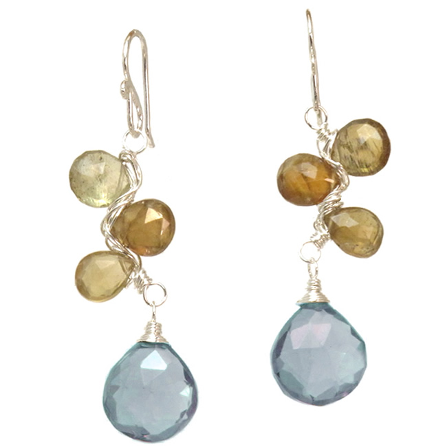 Green garnet and london blue quartz, about 1-1/2".