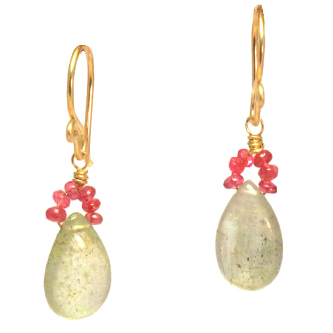 Pink ruby and moss aquamarine, about 1-1/4".