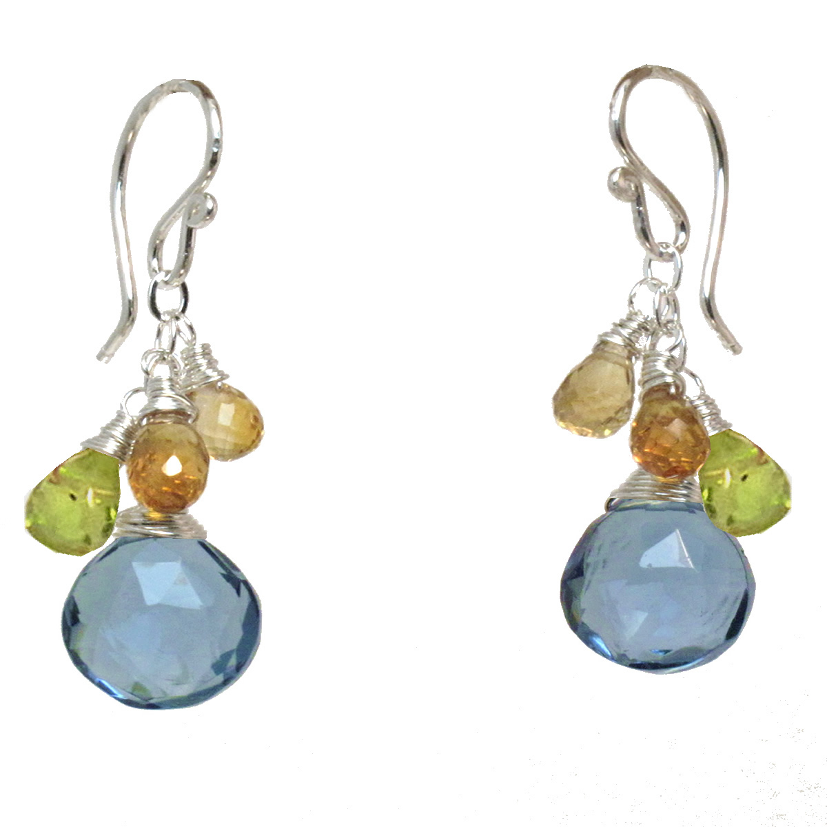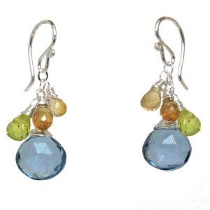 Mandarin garnet, peridot, and blue quartz, about 1-1/4".