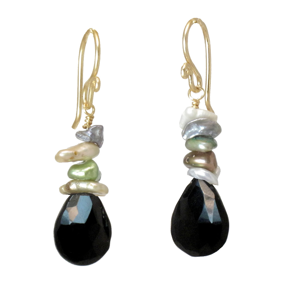 Mixed pearls with black tourmaline, about 1-1/4" long.