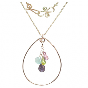 Hammered drop with your choice of 4 stones, about 18". Contact us for different lengths.