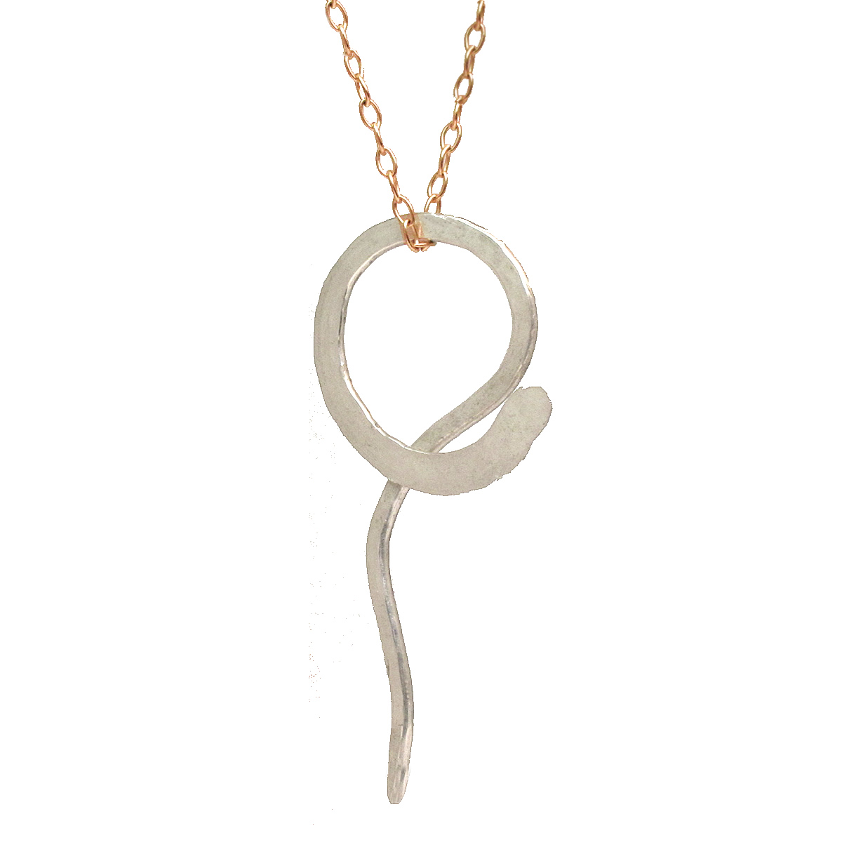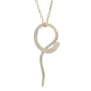 Hammered heavy gauge snake shape on chain, about 18" long pendant about 2-1/4" long. Contact us for different lengths.