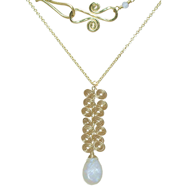 Hammered spirals with choice of stone, about 18". Contact us for different lengths.
