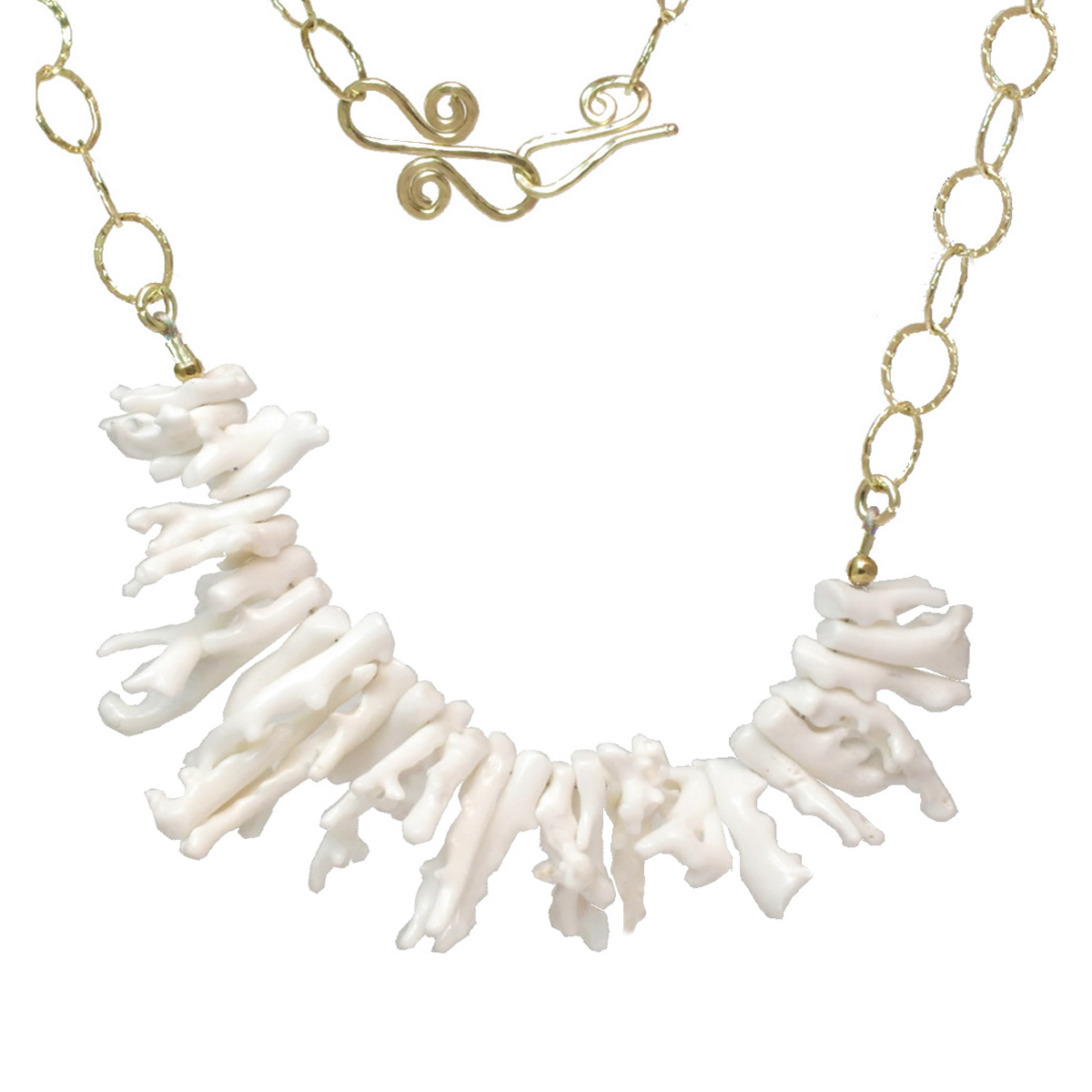 White branch coral on large link chain, about 18". Contact us for other lengths.