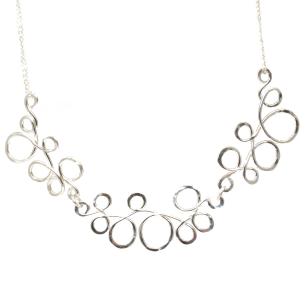 Hammered squiggle shapes on chain, about 18". Contact us for different lengths.
