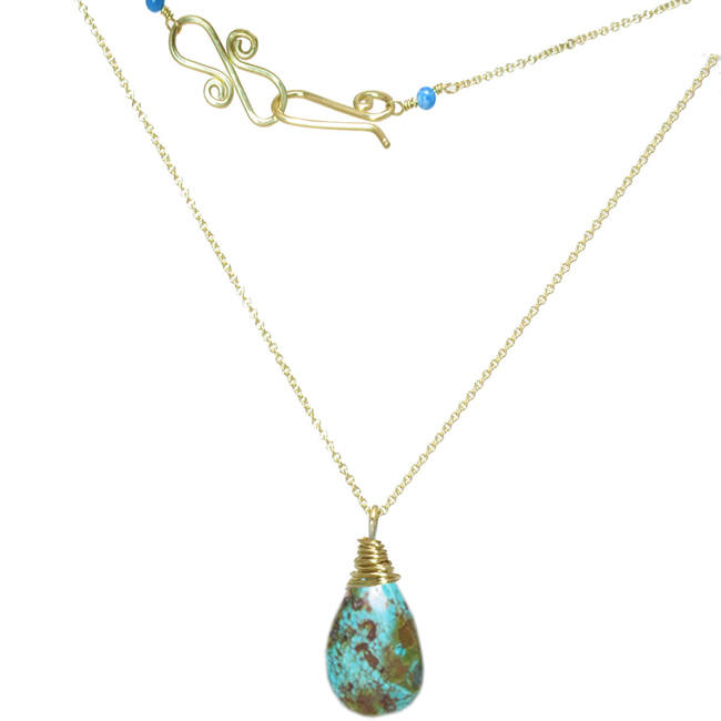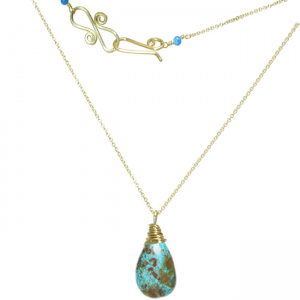 Green marbled turquoise drop on chain, about 18". Contact us for different lengths.