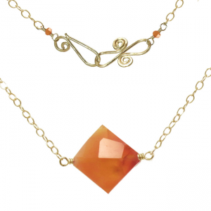 Carnelian diamond on fine chain, about 18", Contact us for different lengths.