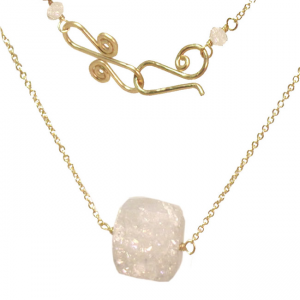 White druzy quartz cube on fine chain, about 18". Contact us for different lengths.