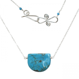Turquoise half moon on chain, about 18". Contact us for different lengths.