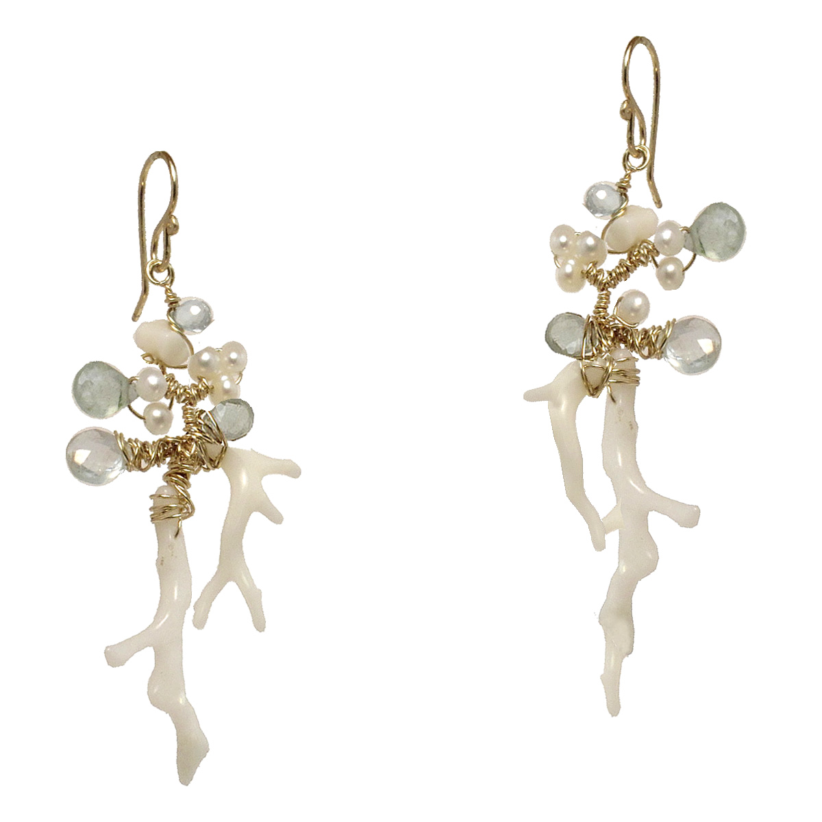 Wrapped branches of aquamarine and white pearls, about 2-1/2" long.