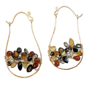 Hammered drop shapes wrapped with black spinel, mandarin garnet, whiskey quartz, citrine, about 2".