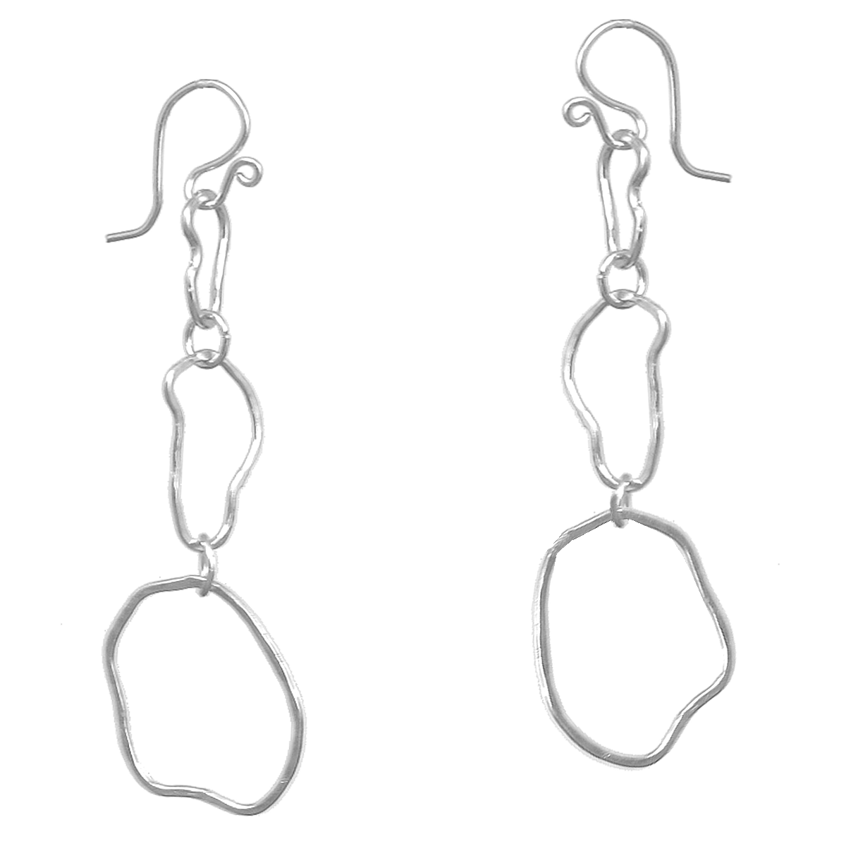 Hammered squiggle circles, about 2" long.