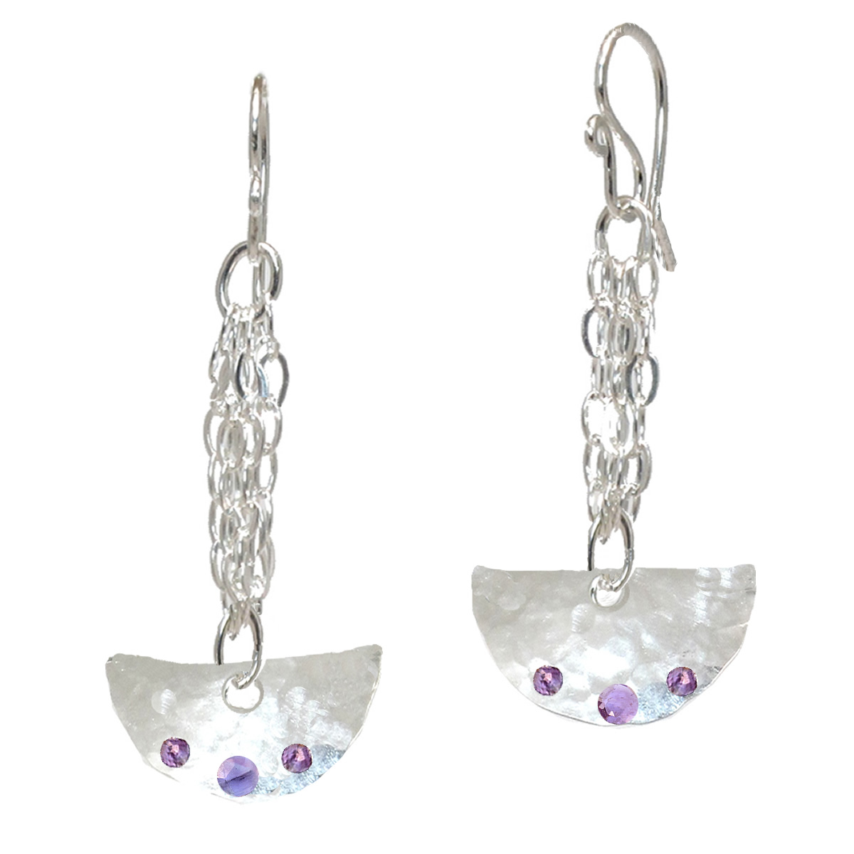 Hammered half-discs on chain with choice of stone, about 2" long.
