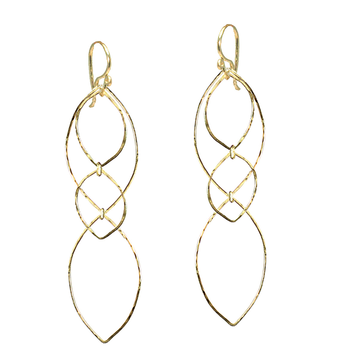 Hammered leaves, about 3" long.