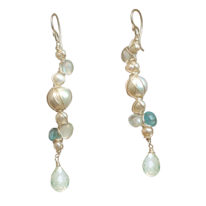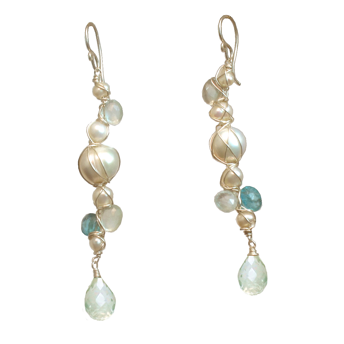 Branches of pearl, apatite, aquamarine, and green amethyst, about 2-1/2" long.