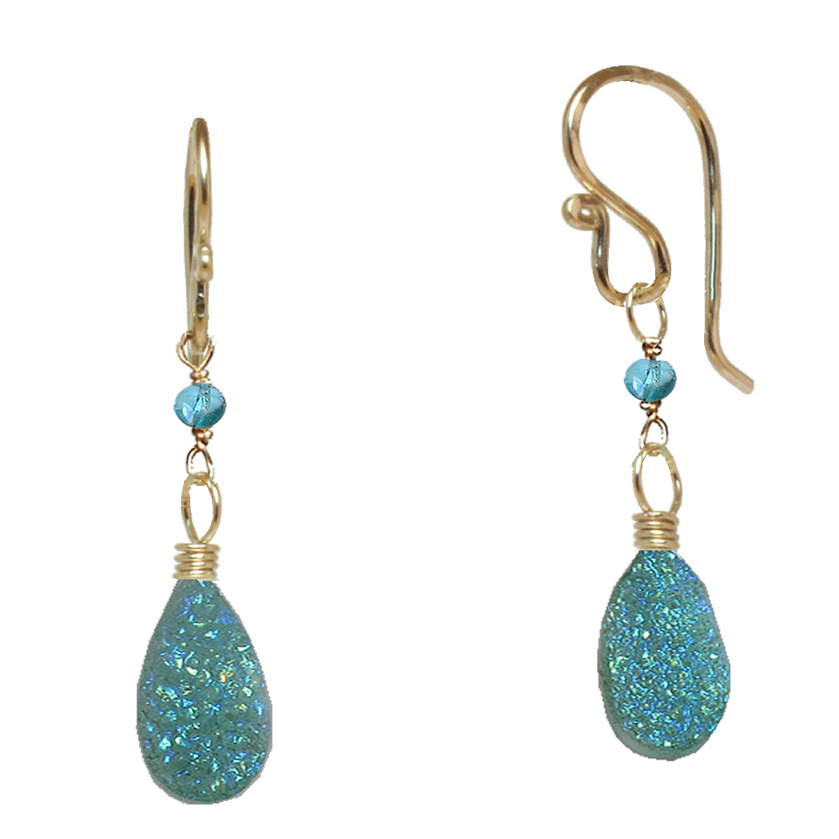 Apatite linked with teal blue druzy, about 1-1/2" long.
