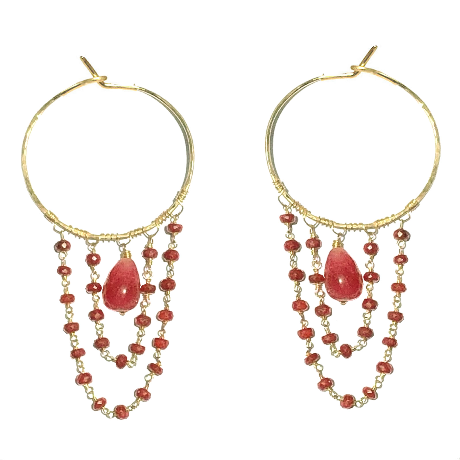 Hammered hoops with choice of stone, about 2-1/2" long.