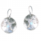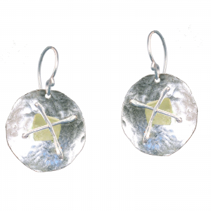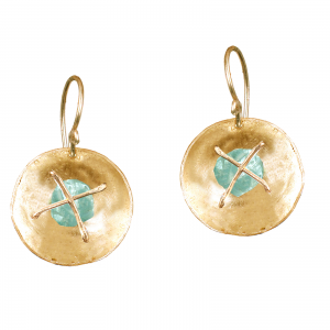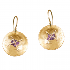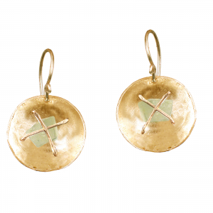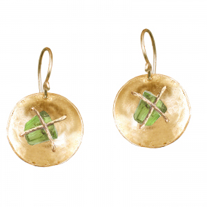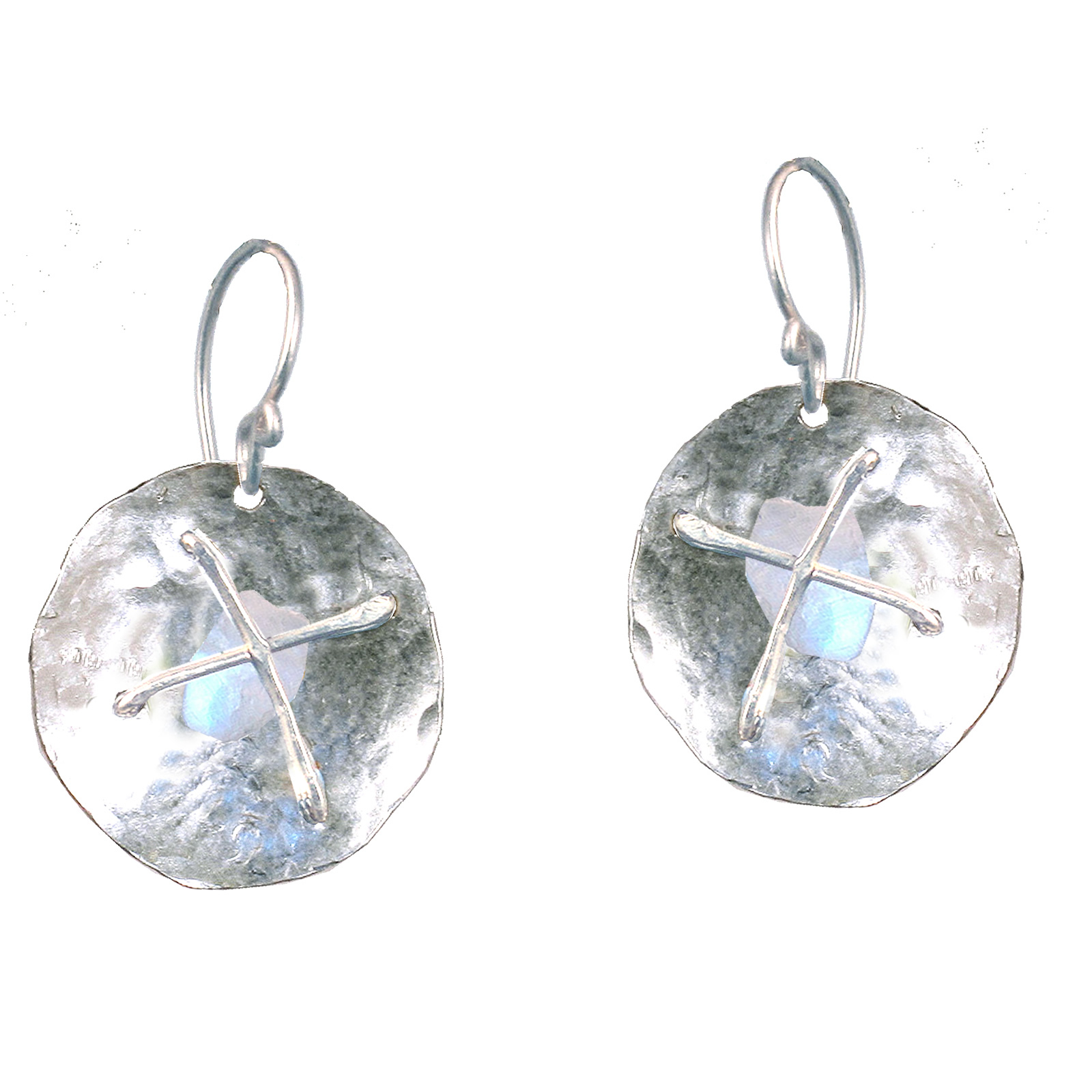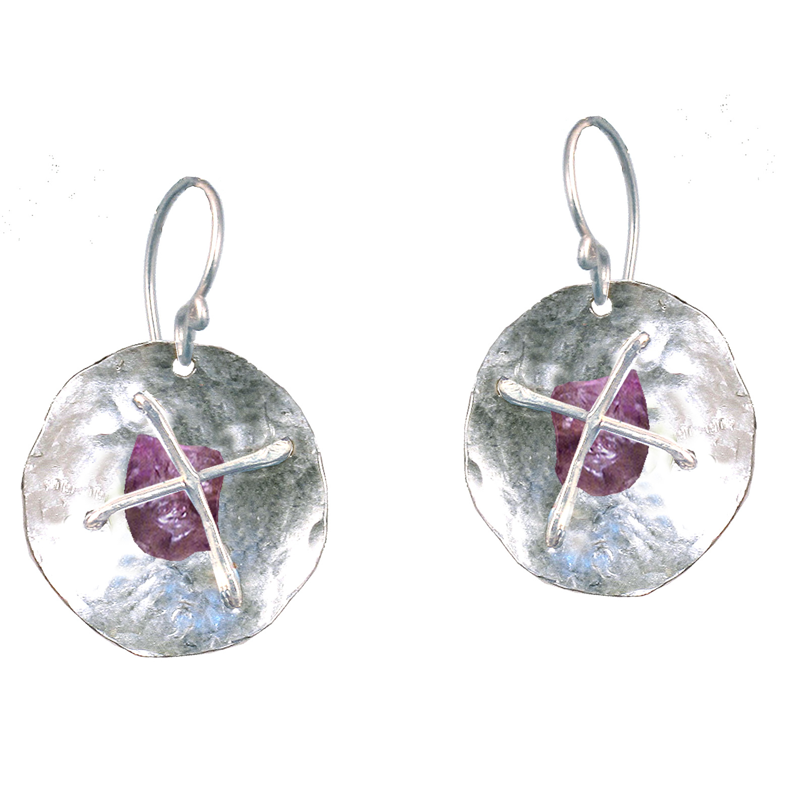 Hammered discs with choice of rough-cut stone accent, about 1" long.