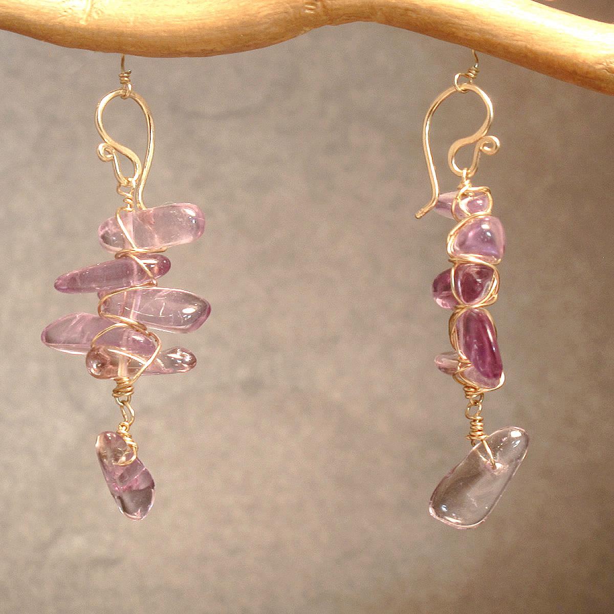 Wrapped branches of amethyst, about 1-3/4" long.