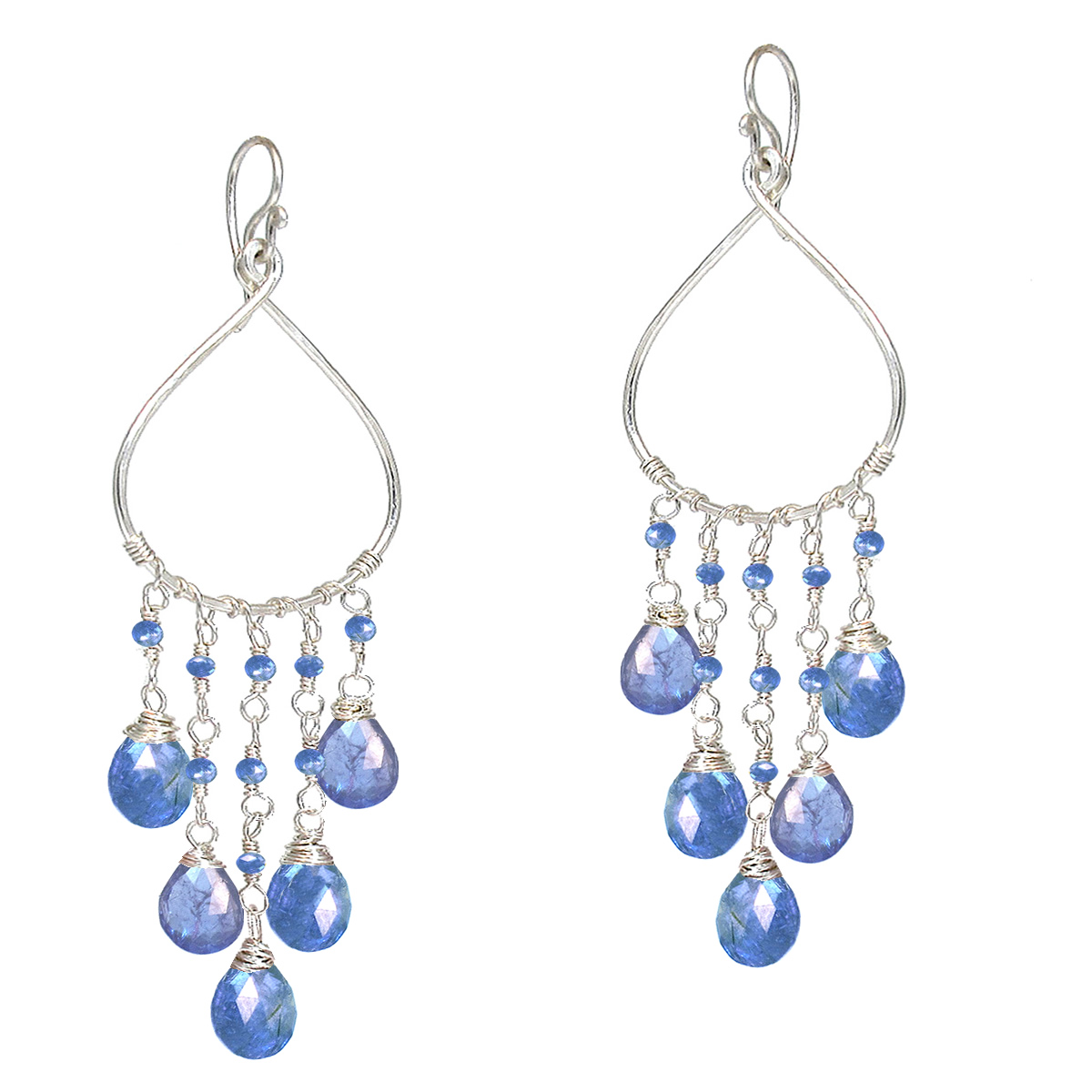 Tanzanite on hammered drops, about 3" long.