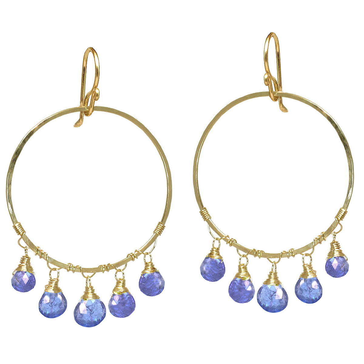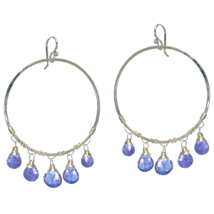 Tanzanite on hammered hoops, about 2" long.