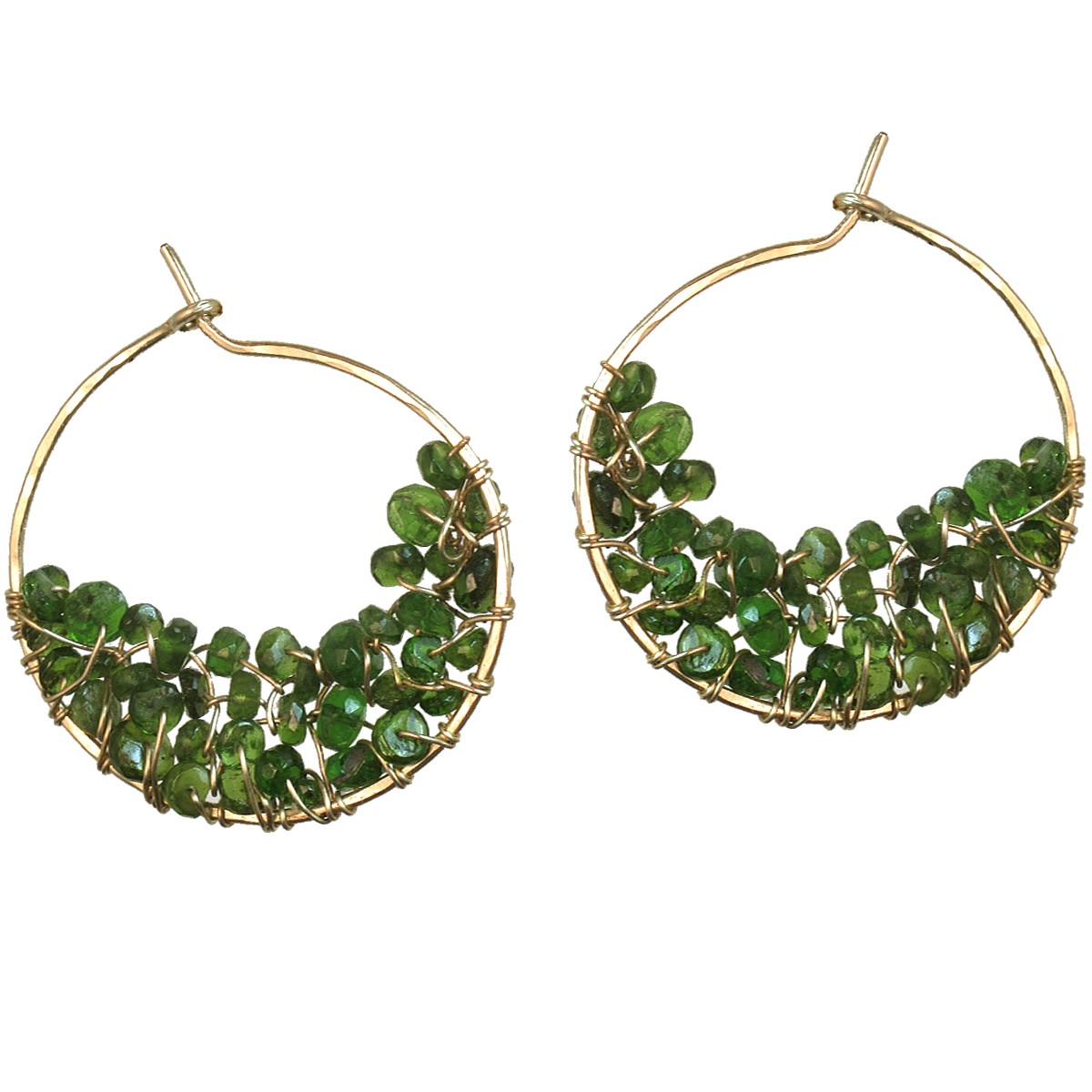 Hammered hoops wrapped with tsavorite, about 1-1/2" long.