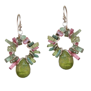 Mixed tourmaline sticks wrapped with vessonite, about 1-1/2" long.