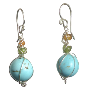 Wrapped branches of mandarin garnet, peridot, and turquoise, about 1-1/2" long.