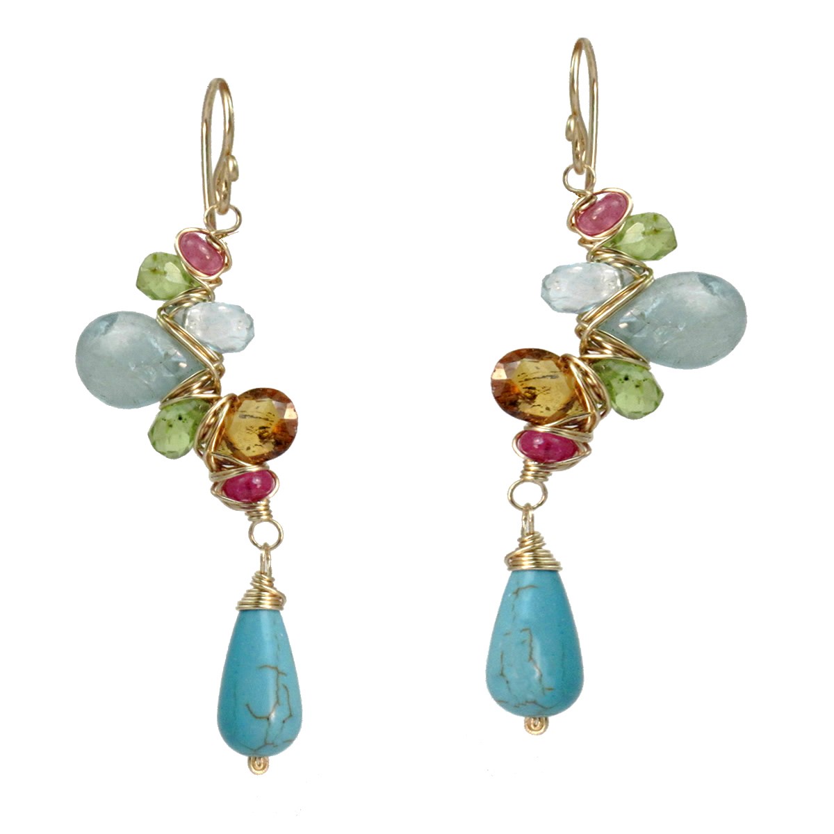 Branches of ruby, peridot, aquamarine, citrine, and turquoise, about 1-3/4" long.